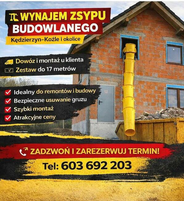 WYNAJEM ZSYPU BUDOWLANEGO – KĘDZIERZYN-KOŹLE I OKOLICE Oferujemy wynajem zsypu budowlanego do gruzu i odpadów ...